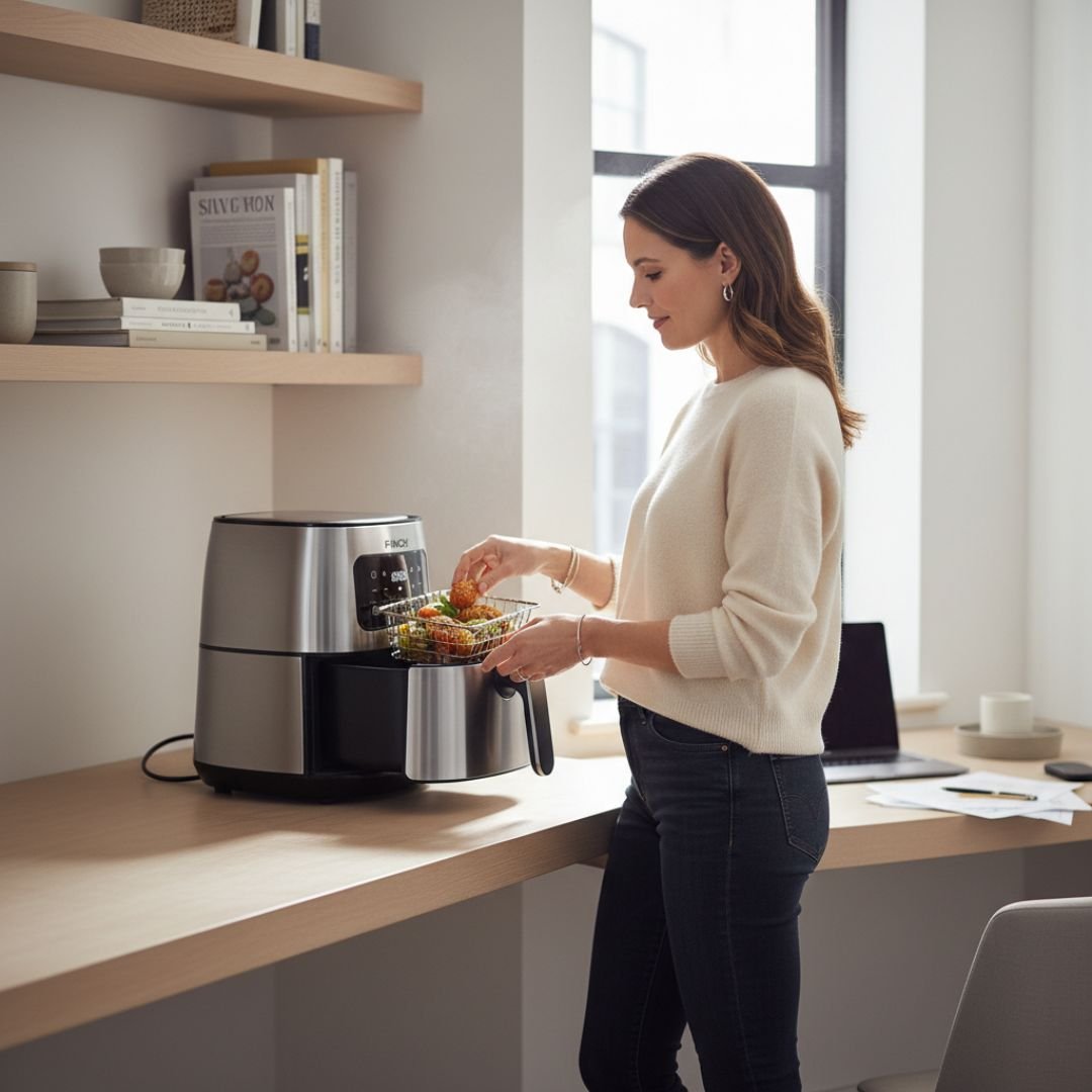 Meet the FINCH FIRE Compact Air Fryer, your new secret weapon for quick, healthy, and delicious meals. Its modern stainless steel design brings a touch of elegance to any countertop while its powerful performance delivers perfectly crisped results every time. Perfect for busy individuals and small families, this air fryer simplifies your cooking routine without sacrificing flavor.